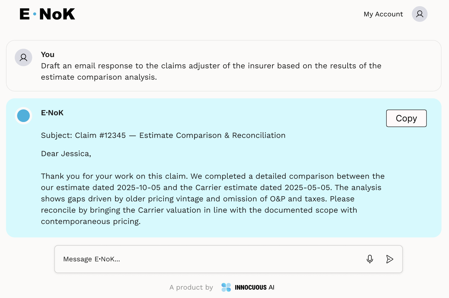 Enok is a convenient tool for public adjusters (PAs) to understand key discrepancies in their estimate comparisons rapidly.